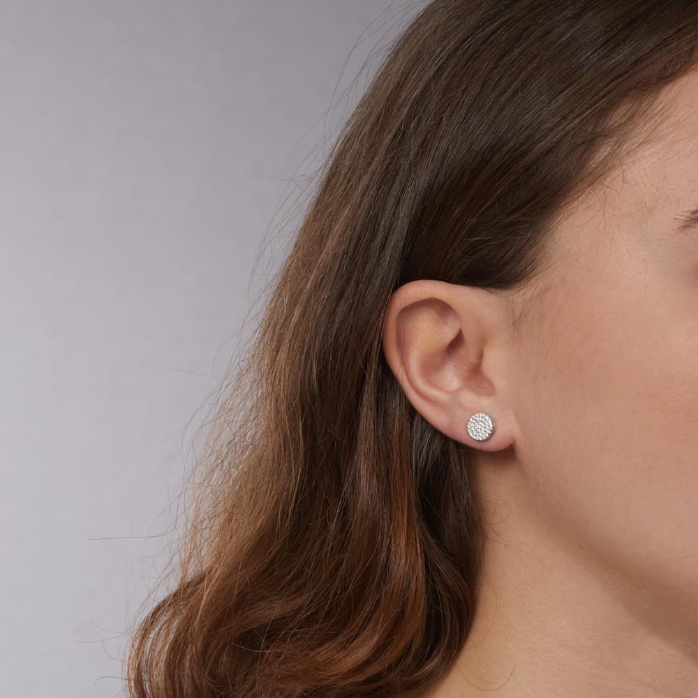 Elegant ladies' stud earrings crafted from high-quality silver, featuring a dazzling array of sparkling zirconia stones. These timeless earrings add a touch of sophistication and shimmer to any outfit, perfect for both everyday wear and special occasions.