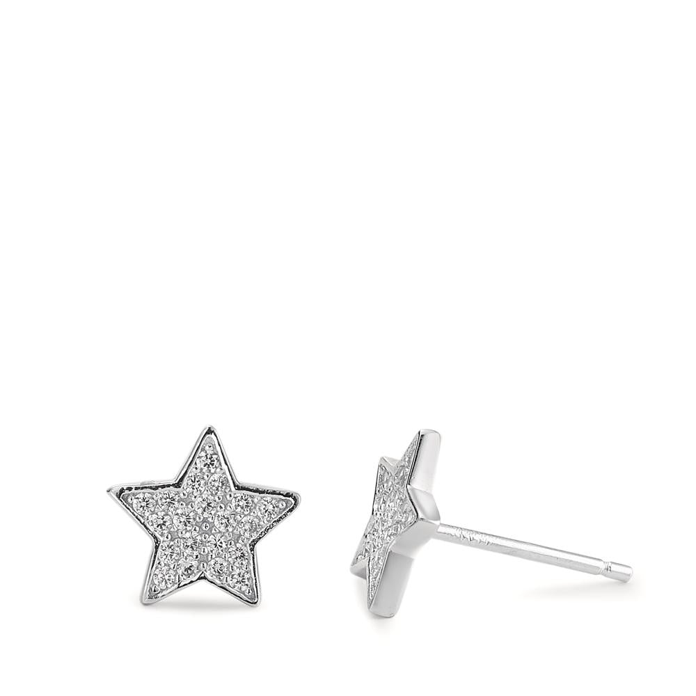 Stud earrings Silver Zirconia Rhodium plated Star Ø8 mm