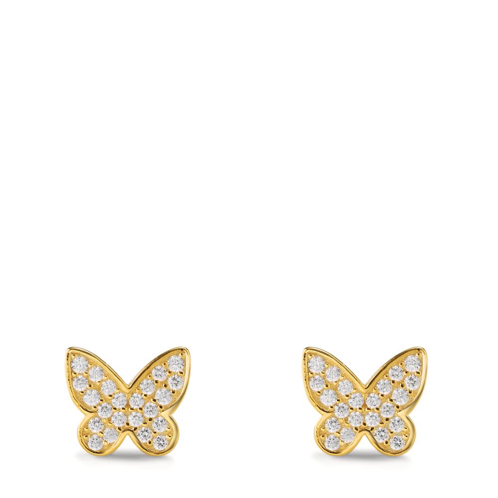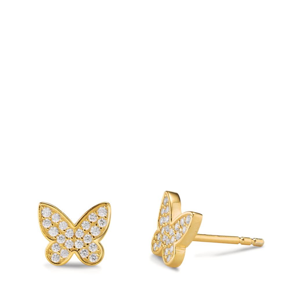 Stud earrings Silver Zirconia Yellow Gold plated Butterfly Ø7 mm