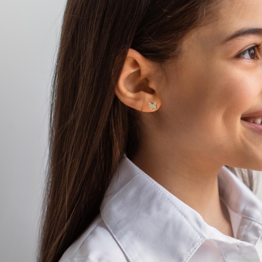 These delicate butterfly stud earrings for girls are crafted from sterling silver and adorned with sparkling cubic zirconia stones. Their charming design and radiant shine make them a perfect gift or everyday accessory, combining elegance and playful style.