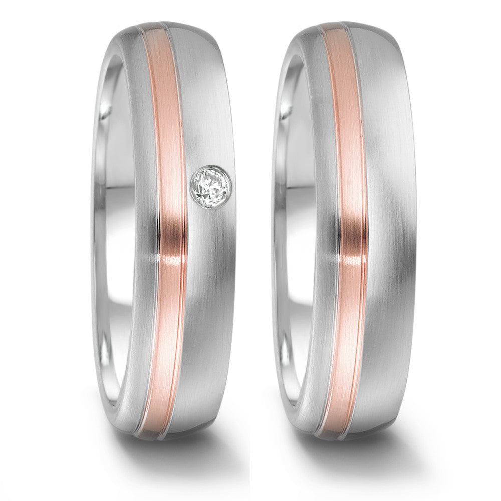 Wedding Ring Stainless steel, 18k Rose Gold Diamond 0.04 ct, tw-si