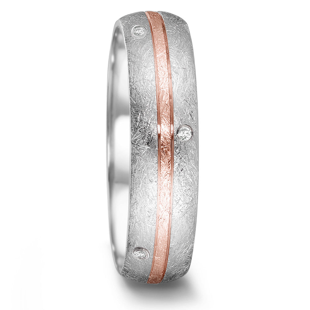 This women's partner ring combines durable stainless steel with a stylish 750 rose gold inlay. The textured surface is elegantly accented with sparkling diamonds, creating a unique and sophisticated symbol of love and commitment. Perfect for lasting impressions.