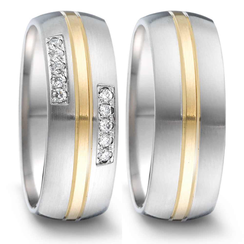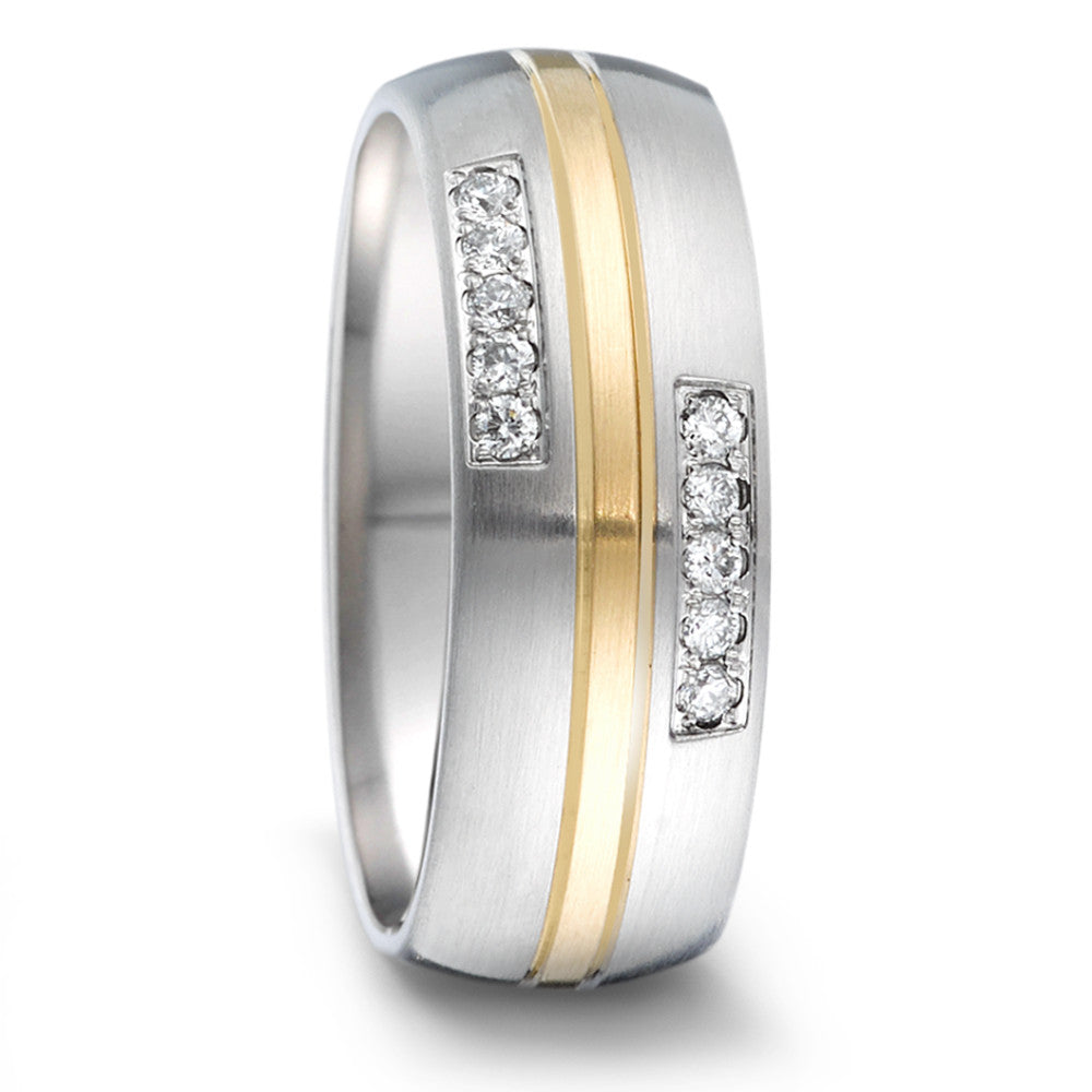 Wedding Ring Stainless steel, 18k Yellow Gold Diamond 0.12 ct, 10 Stones, tw-si