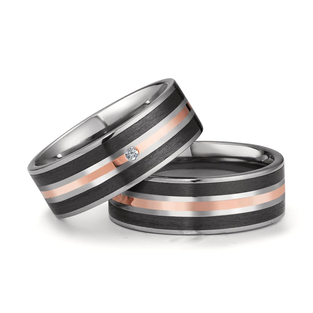 Wedding Ring Titanium, 18k Red Gold, Carbon Diamond 0.02 ct, w-si
