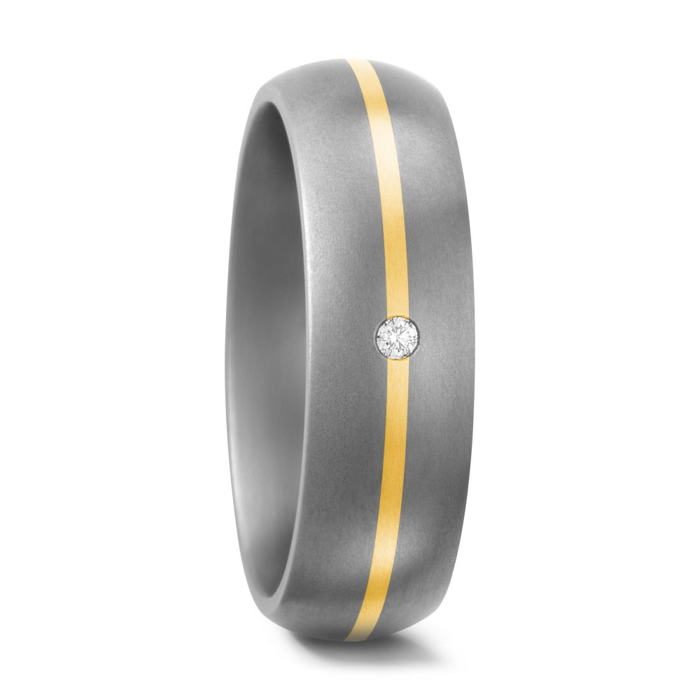 Wedding Ring Titanium, 18k Yellow Gold Diamond White, 0.02 ct, w-si