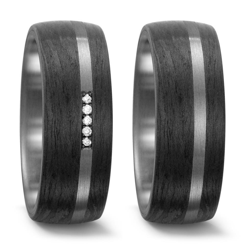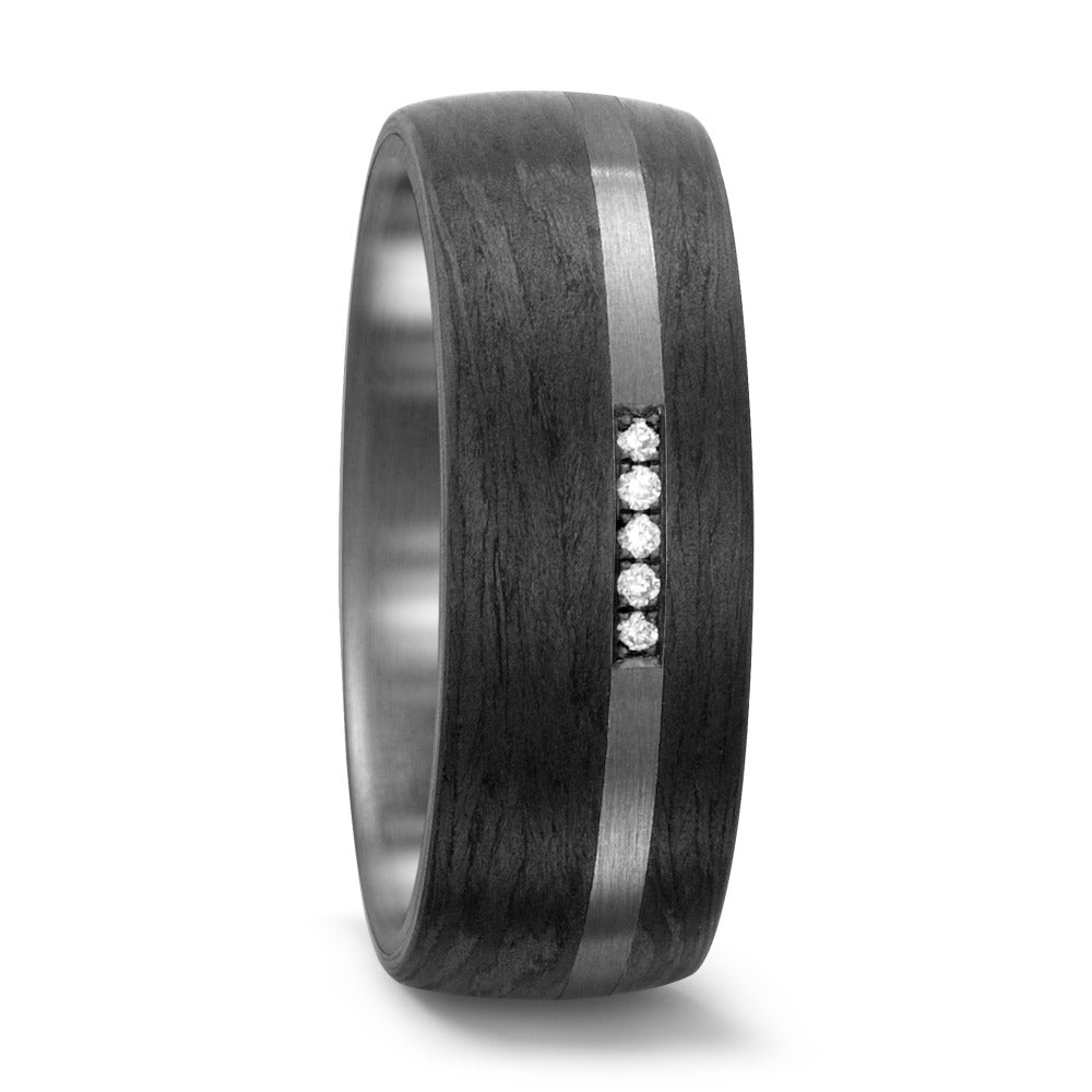 Wedding Ring Titanium, Carbon Diamond White, 0.035 ct, 5 Stones, w-si