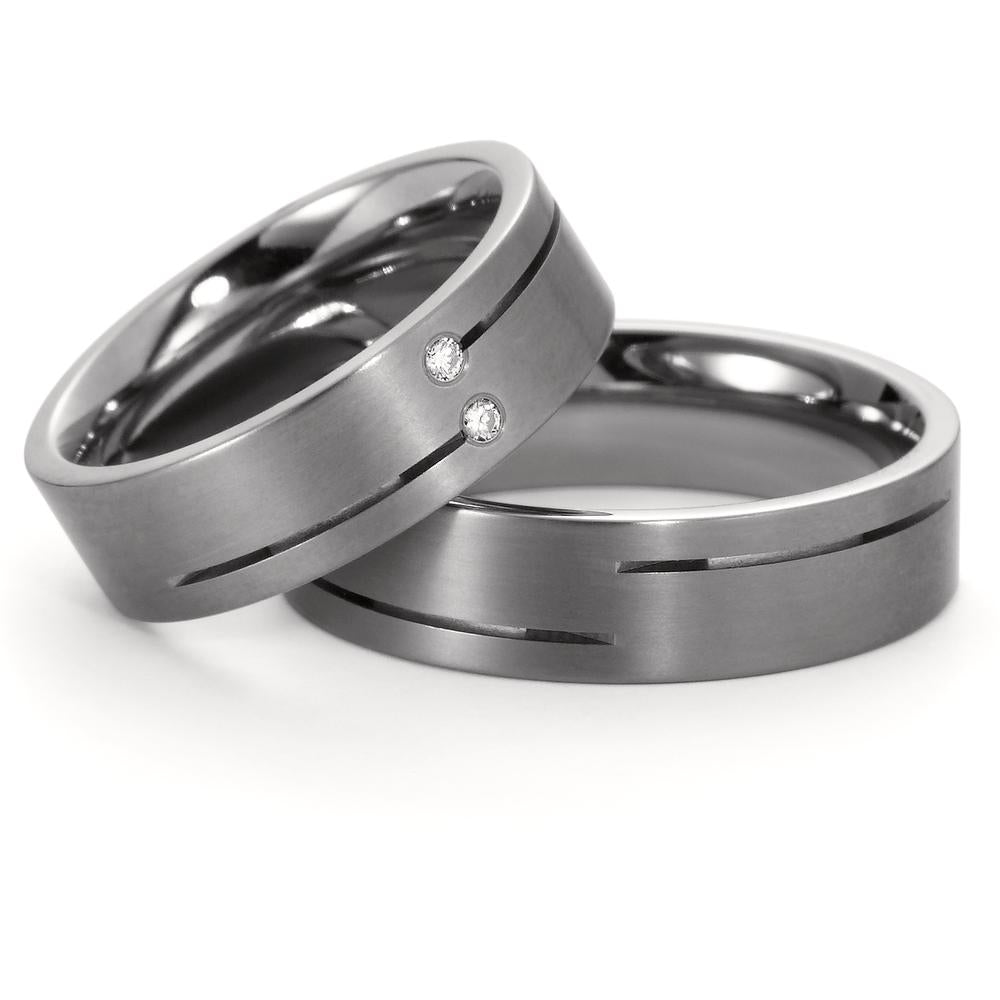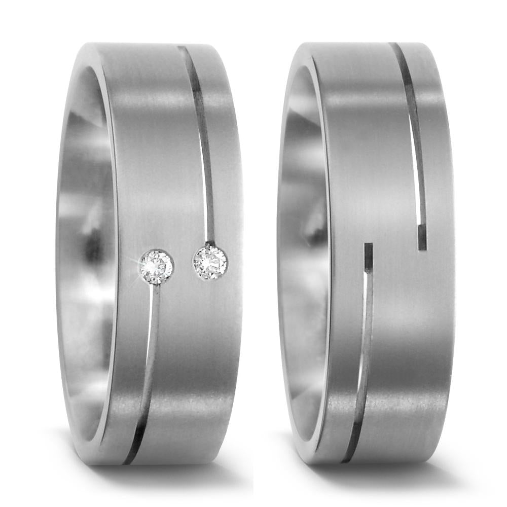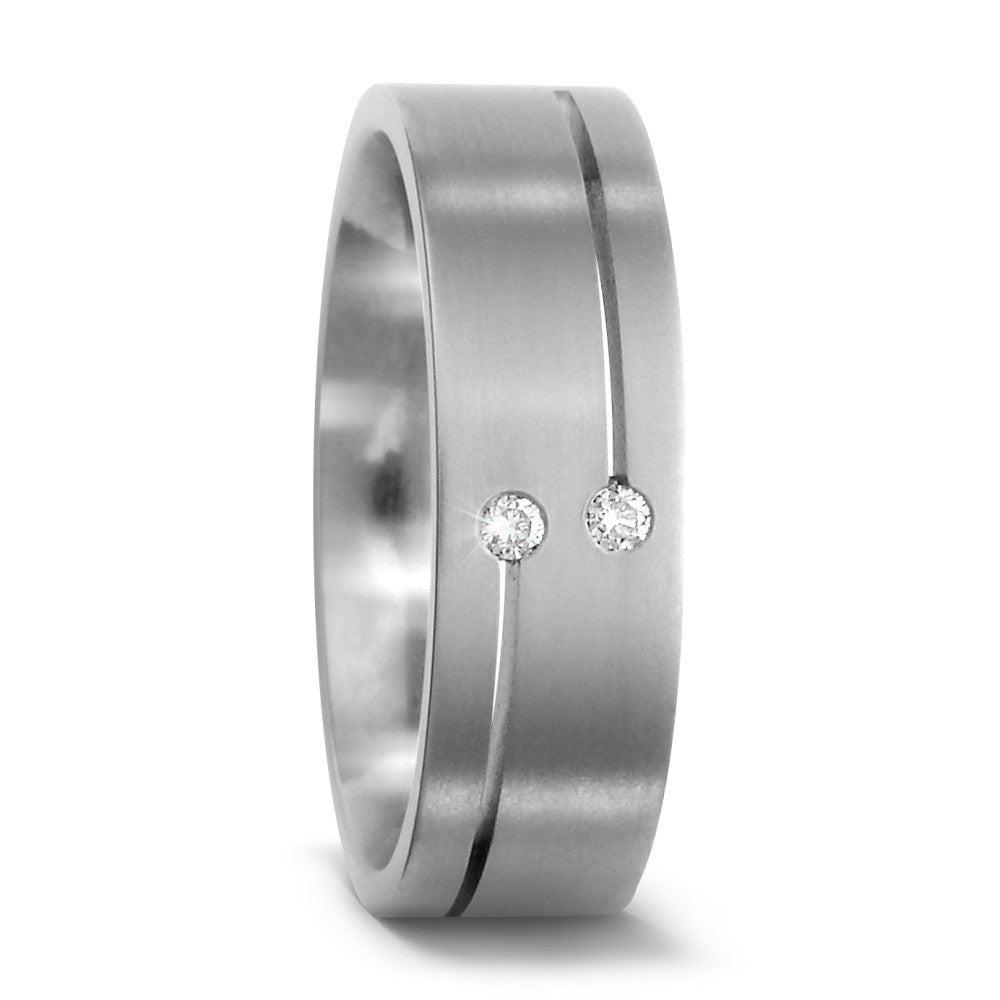 Wedding Ring Titanium Diamond 0.03 ct, 2 Stones, w-si