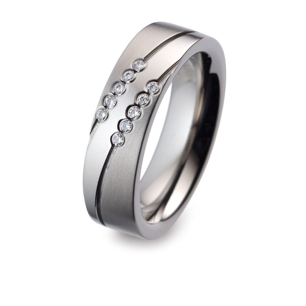 Wedding Ring Titanium Diamond 0.10 ct, 10 Stones, w-si